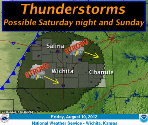 Scattered thunderstorms are expected to develop ahead of the cold front on Saturday night into Sunday. A few strong storms with gusty winds will be possible.