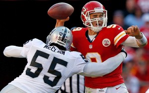 KANSAS CITY, Mo. (AP) – Chiefs quarterback Brady Quinn says he tried to play through a head injury sustained two weeks ago against Oakland, and admitted “that’s my fault for not being smart about it.”