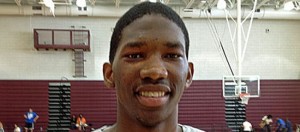 Joel Embiid. (Rivals.com contributed photo)Joel Embiid, a 7-foot, 220-pound senior center from The Rock School in Gainesville, Fla., has orally committed to play basketball at Kansas University. Embiid announced his decision via his twitter account this morning. Embiid reportedly chose Kansas over Florida and Texas. Embiid, who is currently unranked by Rivals.com, in large part because he has played organized basketball for just over one year, began playing at one of Luc Richard Mbah a Moute’s basketball camps in Cameroon when he was 16.