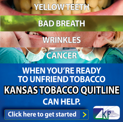 Screen shot 2013-04-15 at 9.00.58 AMThe Kansas Tobacco Quitline www.KSquit.org or 1-800-QUIT-NOW (784-8669) provides FREE one-on-one coaching to help tobacco users quit. The Quitline is available 24 hours a day/7 days a week online or by phone. Trained Quit Coaches provide participants support to create an individual plan to quit tobacco and fight cravings. This FREE service is available to Kansans who are ready to quit any form of tobacco. The Quitline is provided through a partnership between the Kansas Department of Health and Environment and Alere Wellbeing. When you contact the Quitline you can expect confidential, personalized support, one-on-one email, live chat or phone sessions with a certified cessation counselor, to set a quit date within a couple of weeks of registration, and in-depth information on nicotine replacement therapy (patches, etc.) and cessation medications.
