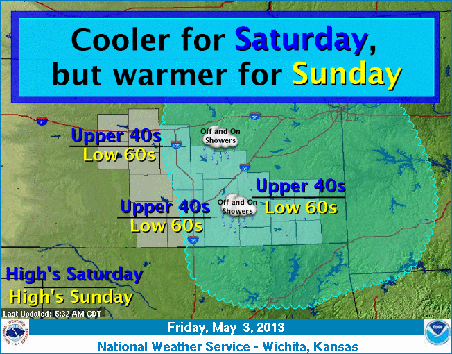 FileCool temperatures usher in the weekend, but Sunday will bring warmer more seasonal like temperatures. Highs on Saturday will be in the upper 40s with low 60s expected for Sunday. Areas along and east of I-135 will see showers off and on through the weekend.