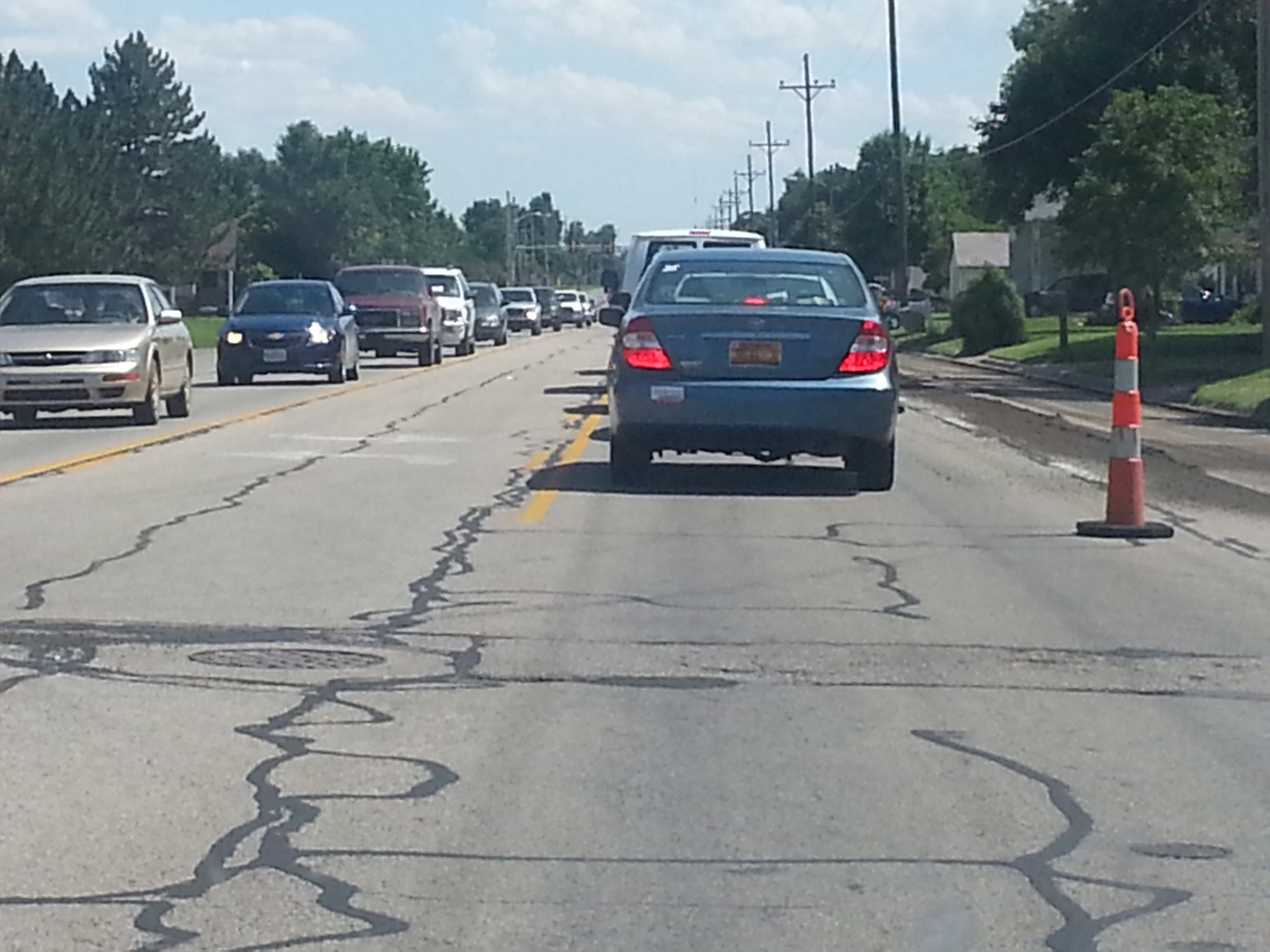 From two blocks South of Crawford to one block North of Cloud On Ohio; the road has been cut down to one lane. Also, the side streets are blocked from entering or exiting, consider this when planing your evening drive home and be safe, there are construction crews out.