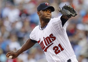 ”That was a huge sequence of pitches,” Twins manager Ron Gardenhire said, adding: ”He’s more in control on the mound. His windup, he’s not falling all over the place.”