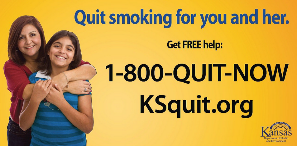 The Kansas Tobacco Quitline www.KSquit.org or 1-800-QUIT-NOW (784-8669) provides FREE one-on-one coaching to help tobacco users quit. The Quitline is available 24 hours a day/7 days a week online or by phone. Trained Quit Coaches provide participants support to create an individual plan to quit tobacco and fight cravings. This FREE service is available to Kansans who are ready to quit any form of tobacco. The Quitline is provided through a partnership between the Kansas Department of Health and Environment and Alere Wellbeing. When you contact the Quitline you can expect confidential, personalized support, one-on-one email, live chat or phone sessions with a certified cessation counselor, to set a quit date within a couple of weeks of registration, and in-depth information on nicotine replacement therapy (patches, etc.) and cessation medications.