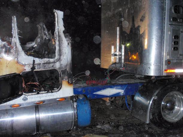 The trailer of the semi was empty. Cause of the fire is unknown. Estimated loss is $43,000.
