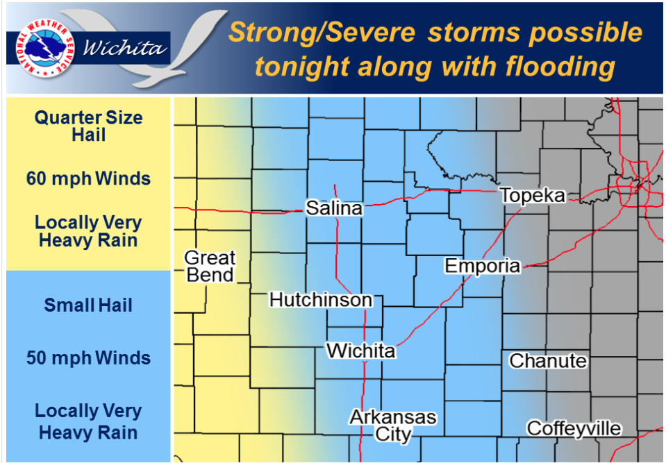 Clusters of strong thunderstorms with brief but torrential rainfall rates will continue moving across Southeast Kansas during the morning hours. Localized flooding will be possible where storms move repeatedly over the same areas. More storms are expected to develop this afternoon and evening along a slow moving cold front. Some of these storms may become severe with 60 mph winds, half dollar sized hail and locally heavy rains.