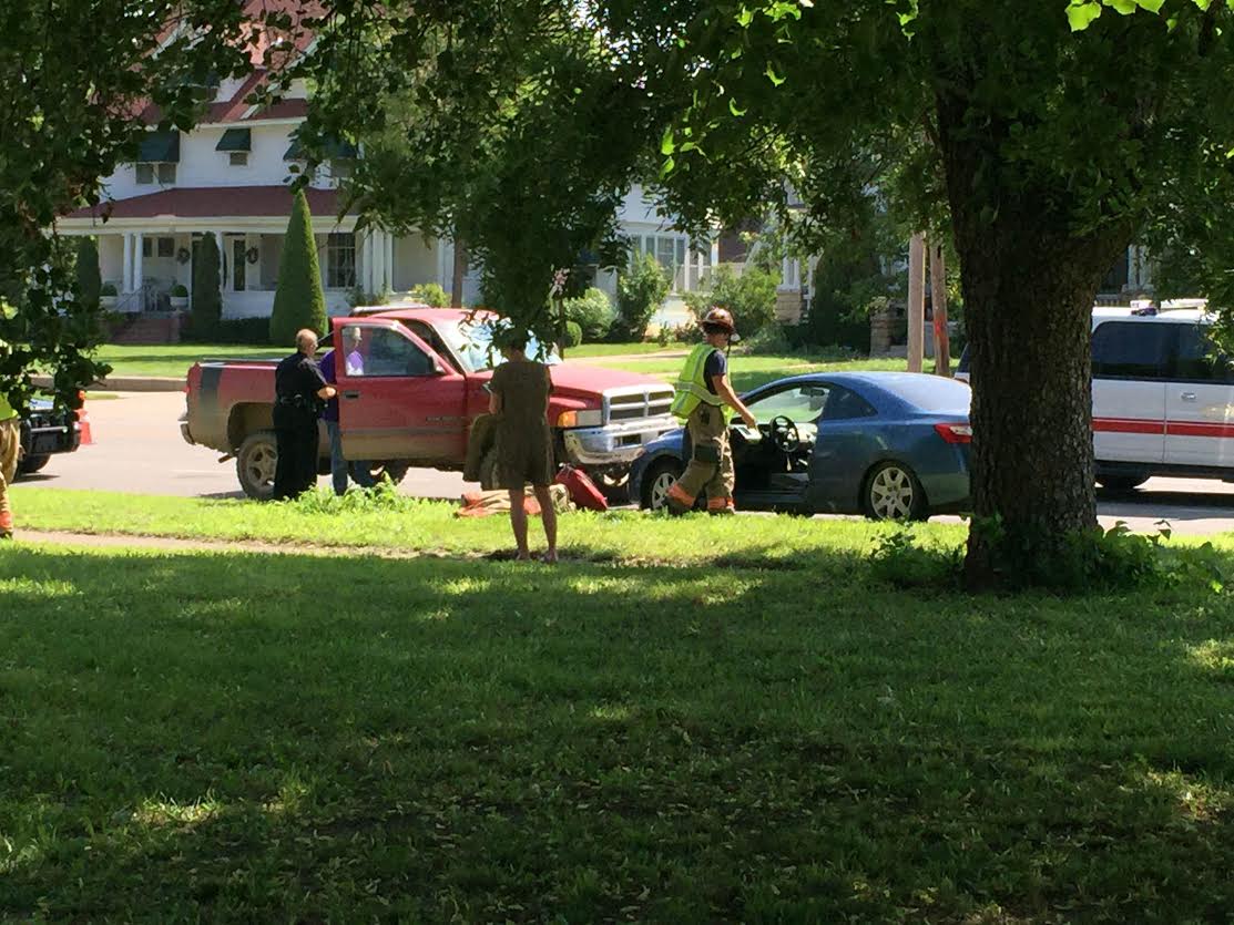 First responders were on the scene of a two vehicle accident just north of the intersection of Crawford Street and Santa Fe Avenue late Monday morning.