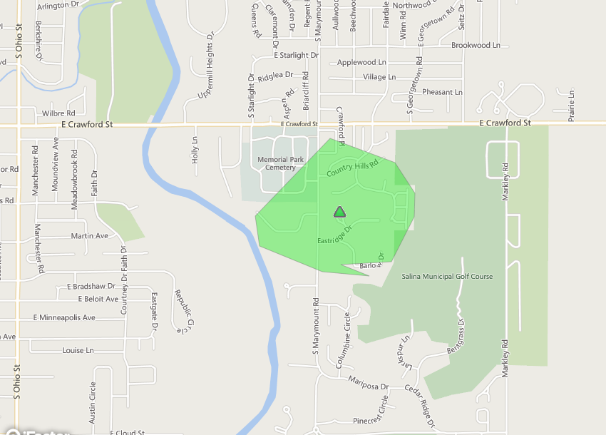 Update: As of 6:00 a.m., the outage is now affecting between 50-500 customers. The area still reported without power is east of South Marymount Road, South of East Crawford, and West of the Salina Municipal Golf Course.