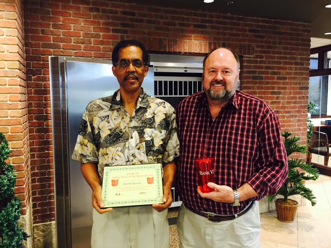 Tom Wilbur, President of BANK VI, presents Bill McMosley with his Hero of the Week Award!