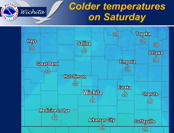 Colder temperatures for Saturday. North winds will keep temperatures in the upper 30s to lower 40s.