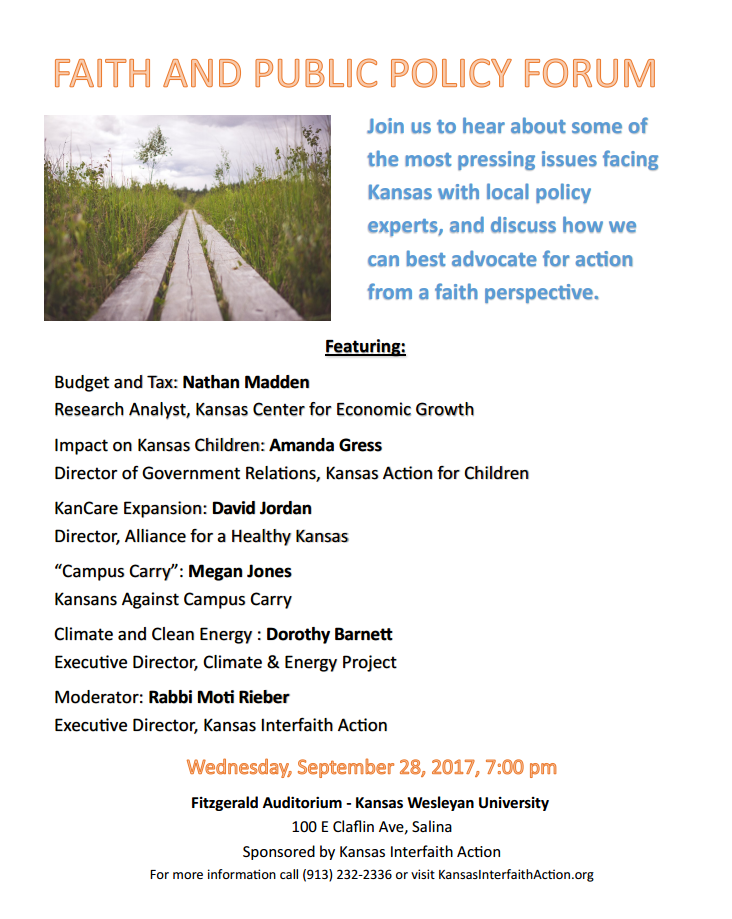 For information on this forum, call 913-232-2336 or visit KansasInterfaithAction.org.