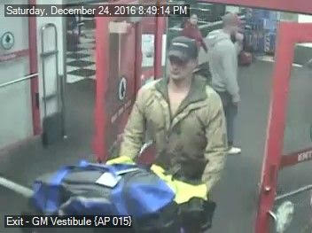 On December 24, 2016 at approximately 8:15 p.m., a white male entered Target, 2939 Market Place and attempted to steal a shopping cart full of items. When confronted by store personnel, the person ran from the store and entered into a lighter green possibly F-150 truck.