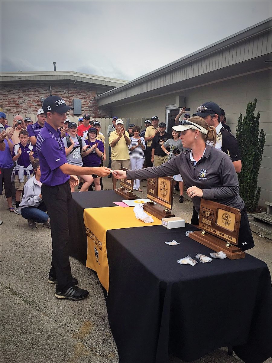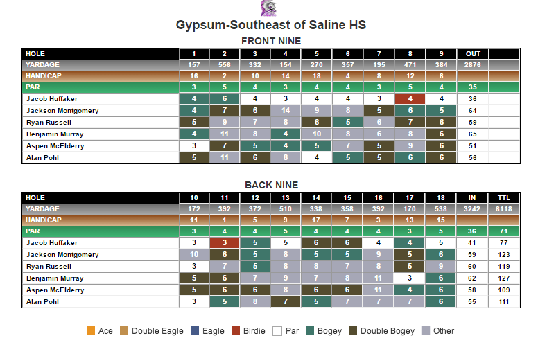Southeast of Saline junior Jacob Huffaker won the boys’ 3A State Golf title in Independence yesterday. Huffaker shot a 77, winning the title by three strokes. The Trojans finished 11th as a team, edging out West Franklin High School.