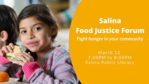 Over 7,500 people in Saline County are food insecure, without consistent access to nutritious meals. Join Kansas Appleseed and our community partners for our Food Justice Forum to talk about actions that YOU can take to help change this!