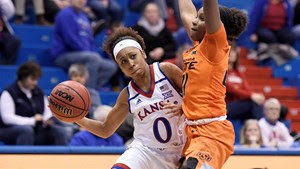 The Jayhawks struggled to find their momentum early on throughout the first half, after mishandling the ball to begin the day, committing eight turnovers, and found themselves trailing the Cowgirls by as much as 14 points in the second quarter.
