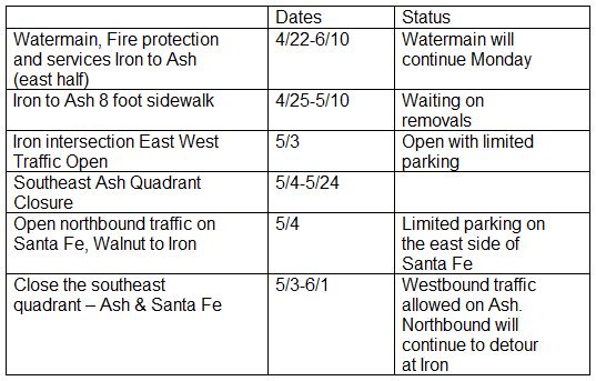 Here’s the latest from the City of Salina and Smoky Hill Construction concerning the work on Santa Fe Ave.