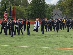 After the handle ceremony, the corps of cadets passed in one final review. At the conclusion, the St. John’s flag was rolled, enshrouded in a case and marched off the parade field as a bag piper played Amazing Grace.