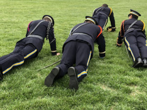 Before Tabor relayed the order to dismiss the corps of cadets for the final time, he order the cadets to do pushups while loudly thanking their parents, much to the amusement of the Old Boys.