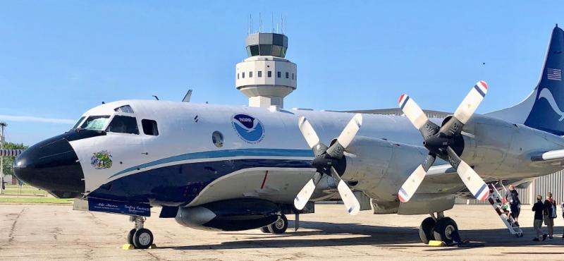 The big plane is also known as a NOAA WP-3 Hurricane Hunter, that will chase storms in the nation’s belly.