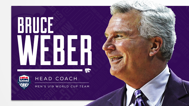 MANHATTAN, Kan. – Kansas State head coach Bruce Weber has been selected as the head coach for USA Basketball’s U19 World Cup Team that will compete at the FIBA (International Basketball Federation) U19 World Cup in Heraklion, Greece, June 29 to July 7.