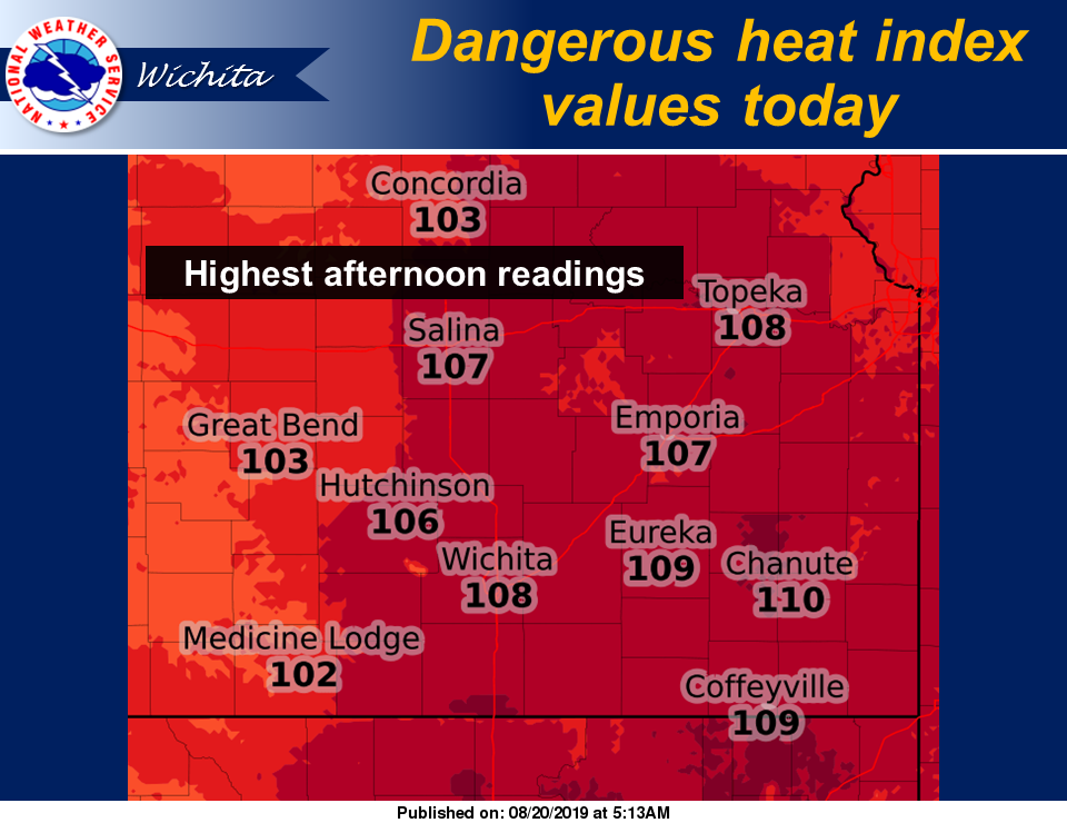 Heat index values of up to 103-110 degrees are expected.