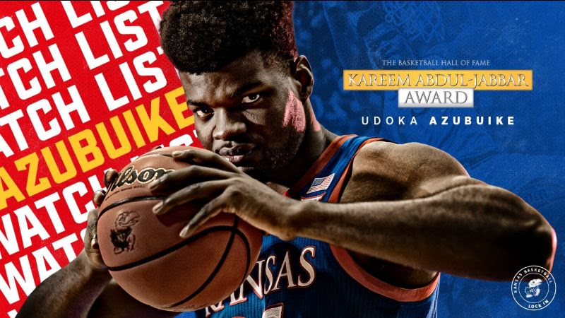 SPRINGFIELD, Mass. – For the second-straight season Kansas senior Udoka Azubuike has been named one of 20 watch list candidates to the 2020 Kareem Abdul-Jabaar Center of the Year Award, the Naismith Memorial Basketball Hall of Fame announced Friday.