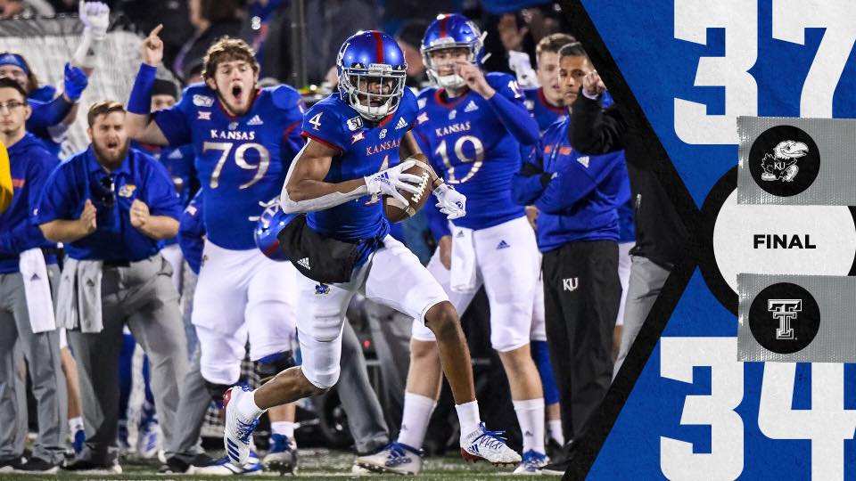 LAWRENCE, Kan. — Douglas Coleman fumbled on a blocked field goal return with two seconds to go and Liam Jones capitalized with a 32-yard field goal to give Kansas a 37-34 win over Texas Tech on Saturday night.